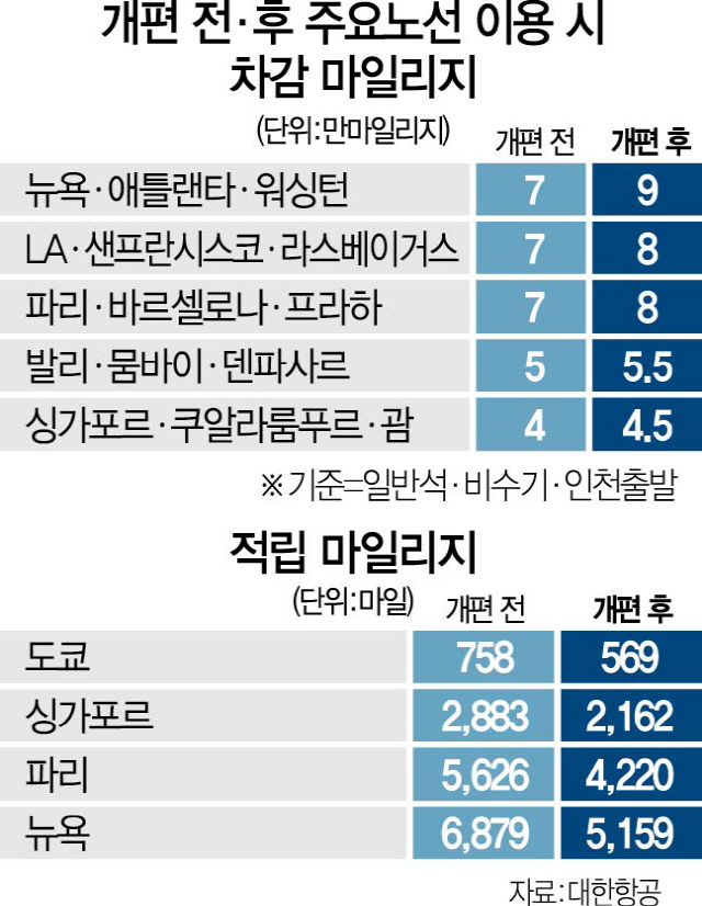 대한항공 마일리지 사용 제도 개편