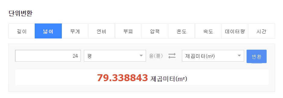예를 들어 25평을 '㎡(제곱미터)'로 전환하면